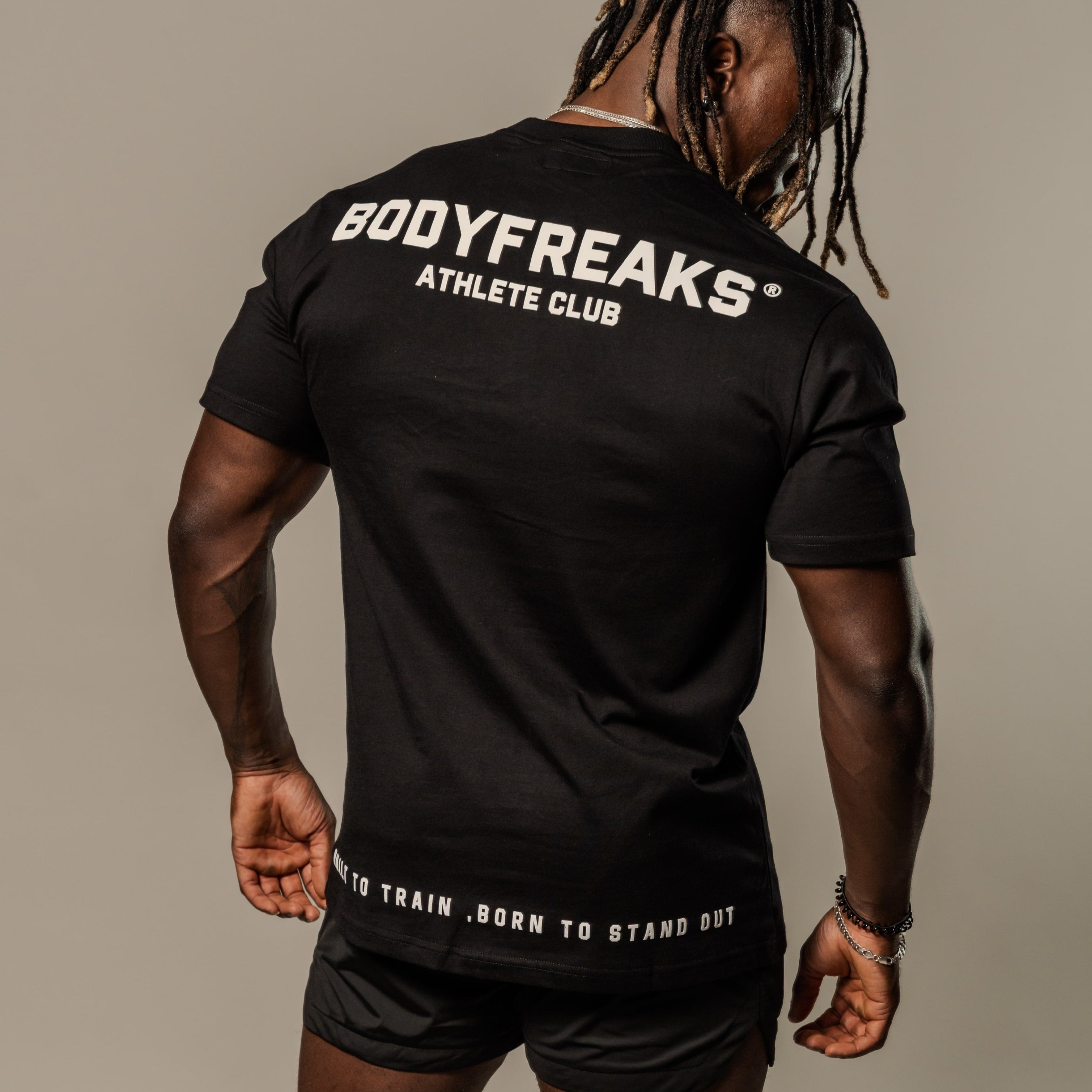 Introducing the Bodyfreaks Slogan Tee.Make a statement with the perfect blend of comfort and style. This oversized gym t-shirt delivers a relaxed fit with a straight hem for effortless wear. Designed with a premium foam logo and crafted from high-quality cotton with stretch fabric, it’s built for those who train...