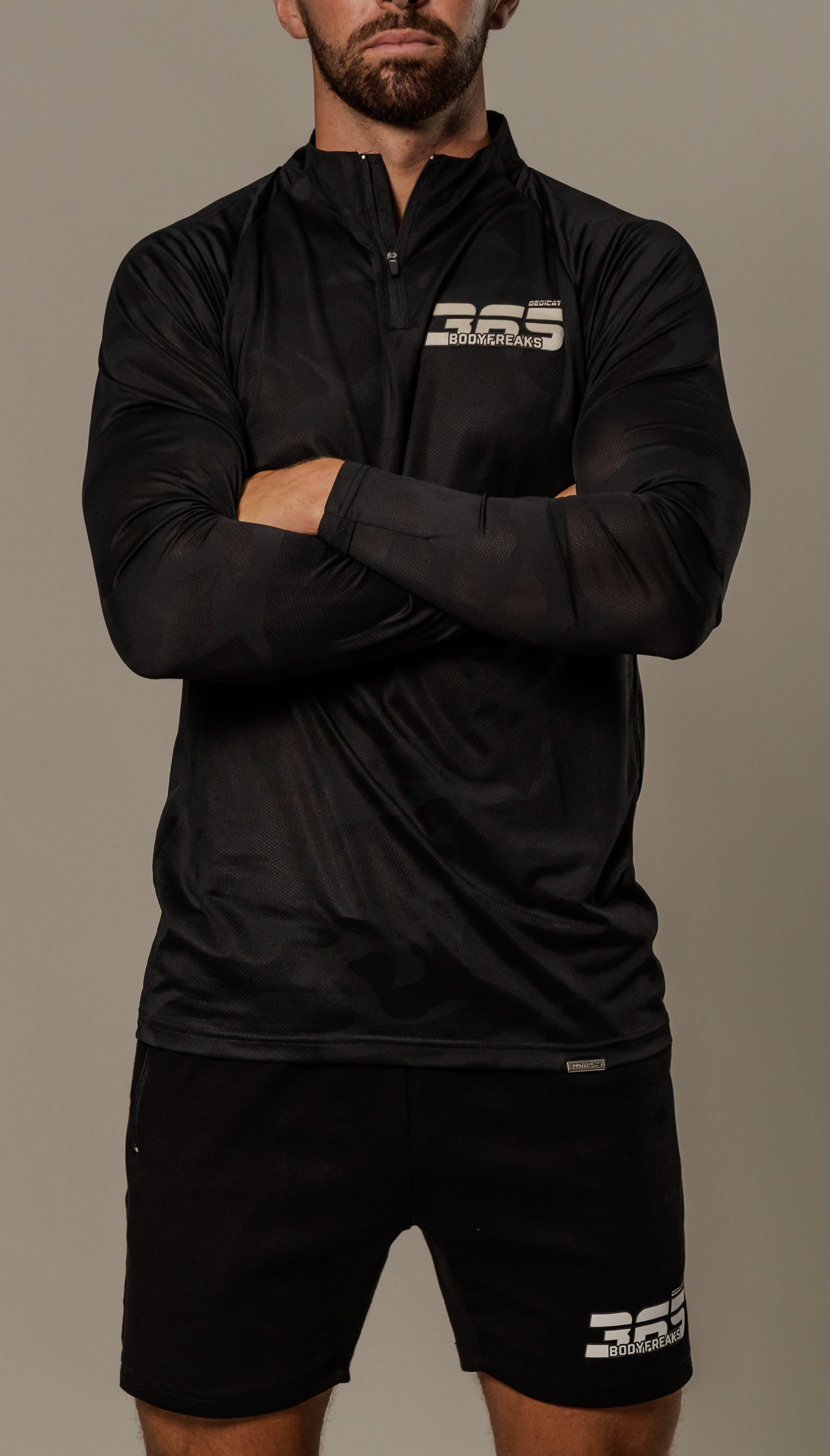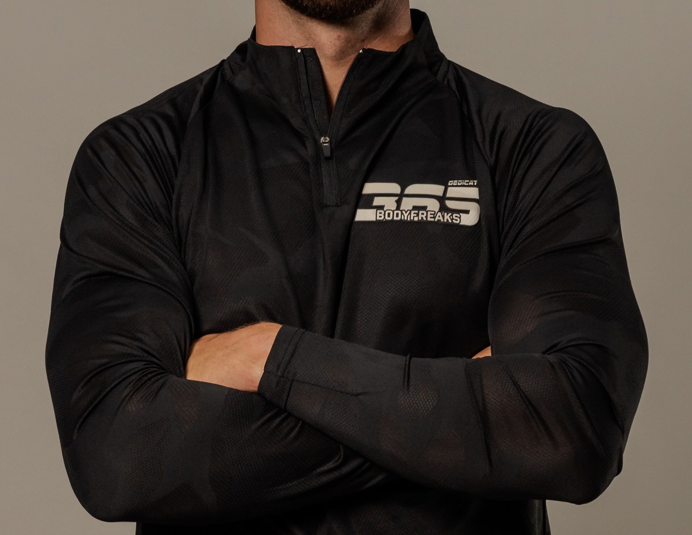 Experience optimal performance with the Tech 365 1/4 Zip Top - CAMO BLACK. This top is expertly crafted with a sleek, muscle fit design and features a modern tonal camo pattern. With a straight hem and a Bodyfreaks 365 Foam Logo on the left chest, this lightweight top is perfect...